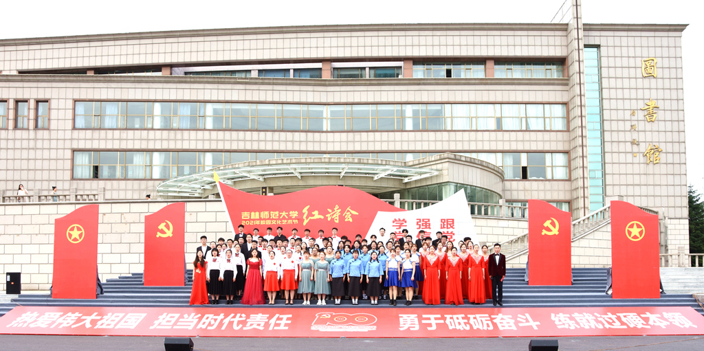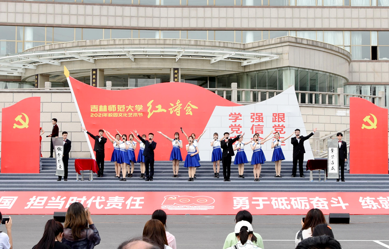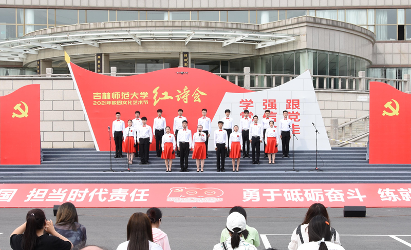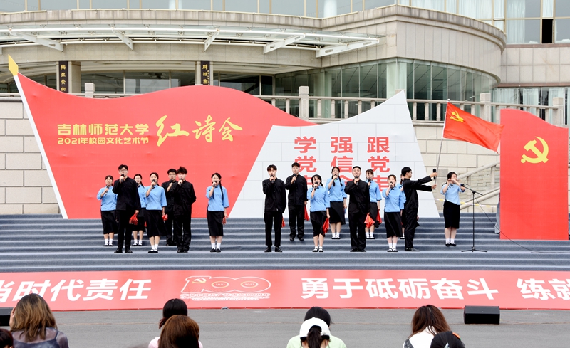 6月16日,庆祝中国共产党成立100周年校园文化艺术节之“学党史 强信念 跟党走”红诗会总决赛在图书馆前夫子广场举行。学校相关部门负责人、部分师生参加活动。