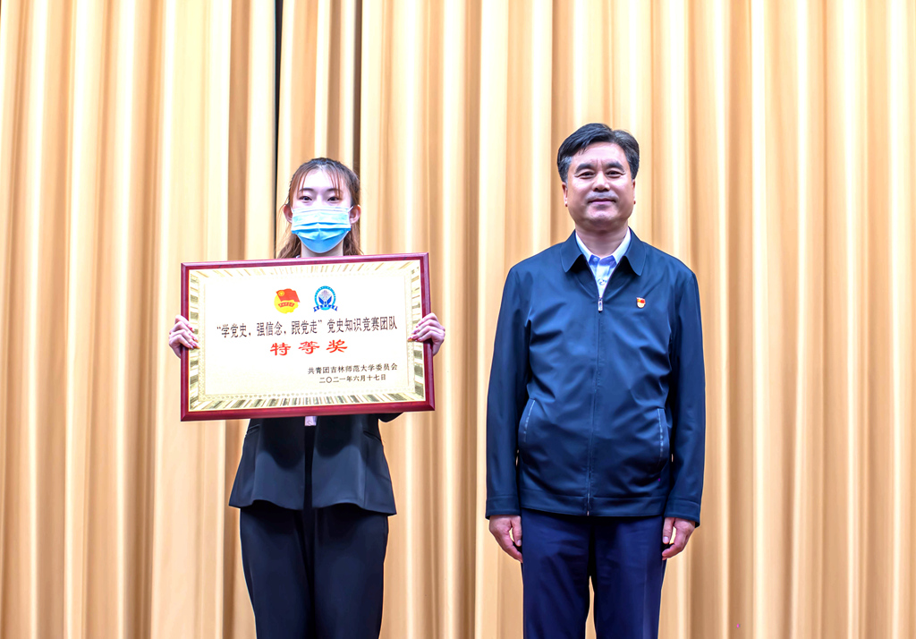 6月17日,庆祝中国共产党成立100周年“学党史 强信念 跟党走”大学生党史知识竞赛总决赛在图书馆报告厅举行。党委书记王喜库、党委副书记刘万民出席活动并分别为获奖学生及单位颁奖。相关部门负责人,相关学院党总支书记、副书记,关工委老师及部分师生参加活动。