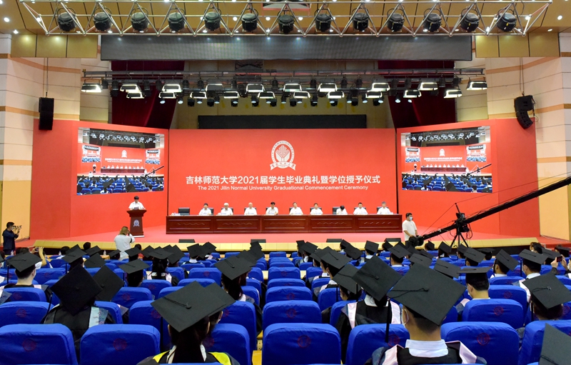 百年正风华,梦想再启航。在喜迎中国共产党成立100周年之际,6月28日,学校在音乐厅举行2021届学生毕业典礼。本次毕业典礼采取线上线下相结合的方式进行。校党委书记王喜库,校长杨小天,党委副书记祖国华、刘万民,党委常委、纪委书记、监察专员侯奎岩,党委常委、副校长李海波、曲殿彬、张作岭、车广波,副校长赵经武出席毕业典礼。各单位党政负责人、各学院副书记、毕业年级辅导员和毕业生代表参加现场典礼仪式,广大师生、校友通过新华社现场云、“新四平”等直播平台参加“云典礼”。刘万民主持毕业典礼。
