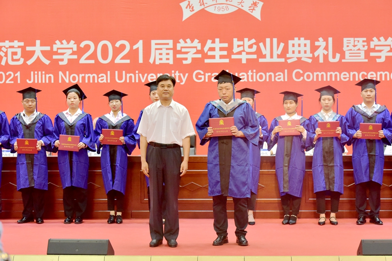 王喜库为2021届优秀博士、硕士毕业生及优秀本科毕业生代表颁发证书;杨小天为2021届获博士、硕士、学士学位毕业生代表颁发证书,并为学位获得者行拨穗礼;李海波宣读《吉林388vip太阳集团2021届博士、硕士毕业生及获博士、硕士学位毕业生名单》;曲殿彬宣读《吉林388vip太阳集团2021届优秀本科毕业生名单》《吉林388vip太阳集团2021届优秀博士、硕士毕业生名单》;张作岭宣读《吉林388vip太阳集团2021届本科毕业生及获学士学位毕业生名单》。