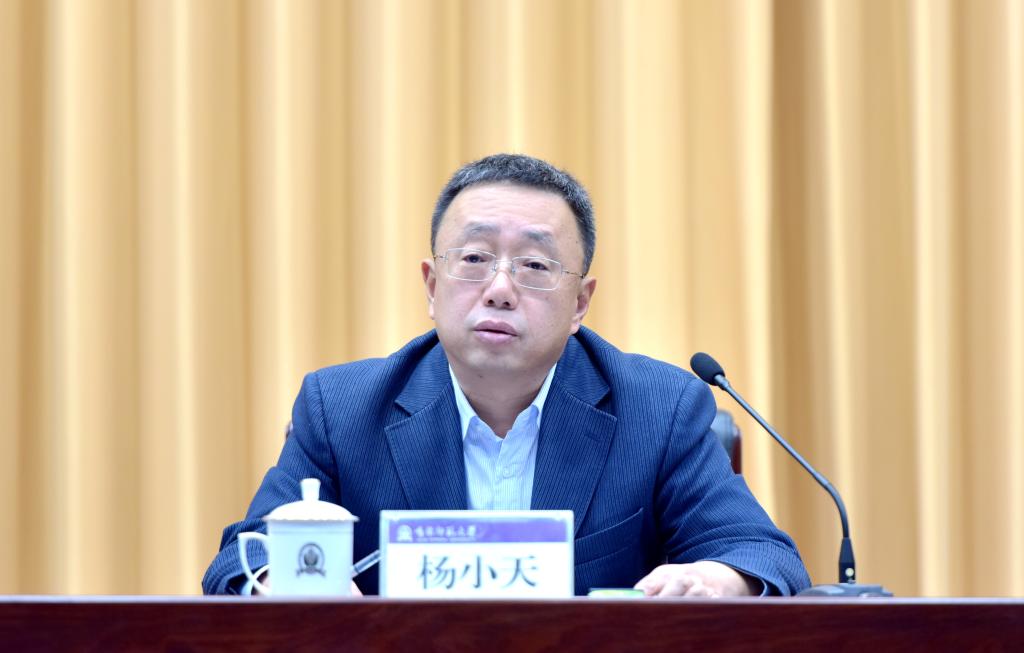 杨小天指出,一年来,在省委省政府正确领导下,全校师生员工同心协力、稳中求进,既保障了疫情防控常态化工作平稳有序,又获批成为博士学位授权单位,树立起学校发展史上新的里程碑。他代表学校向奋斗在疫情防控和学校事业发展一线的全体师生员工表示崇高的敬意和衷心的感谢,指出今天的成绩来之不易,我们要珍惜成绩,乘势而上,继续开创学校事业发展新局面。