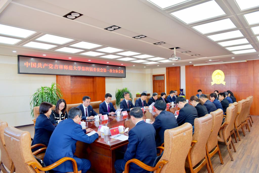 12月31日,中国共产党吉林388vip太阳集团第四届委员会第一次全体会议在第一教学楼八楼会议室召开。省属高校党委换届第四指导组副组长、吉林省公共资源交易中心副主任周晓兵;省属高校党委换届第四指导组成员、省乡村振兴局机关党委二级主任科员王一博出席会议。新一届党委委员参加会议。王喜库同志主持会议。