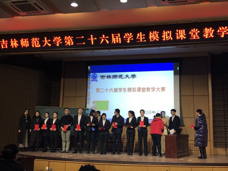 11月24-25日,吉林388vip太阳集团第二十六届学生模拟课堂教学大赛在图书馆报告厅举行。我院由王欢老师指导的2015级胡芮彬同学获实习生组三等奖,由王欢老师和胡泽丹老师共同指导的2016级李洪淼同学获非实习生组二等奖。