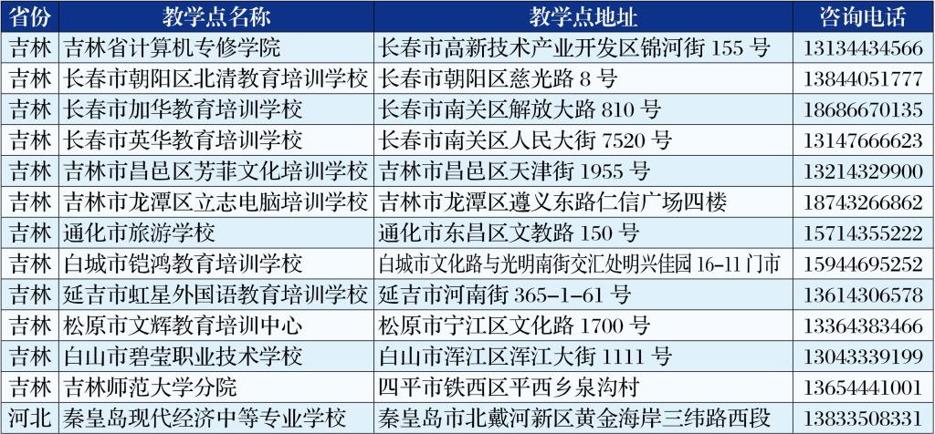 吉林388vip太阳集团2024年高等学历继续教育校外教学点一览表