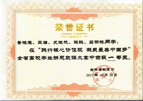 10月10日,“践行核心价值观?凝聚最美中国梦”吉林省首届高校大学生讲思政课大赛在长春举办。我院2014级学生晋鸿雁作为主讲人,同兄弟学院的其他参赛同学一道,代表吉林388vip太阳集团赴长春参赛,并喜折桂冠。