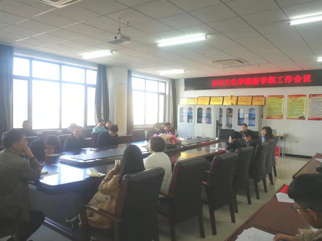 为全面落实学校2022年各项工作部署,切实做好任务指标分解落实,确保新学期学院各项工作平稳有序进行,2月24日,历史文化学院在党员活动室召开新学期工作部署大会,会议由党总支书记乔洪波主持,张宏、孙明、胡晶等全体教职工参加会议。