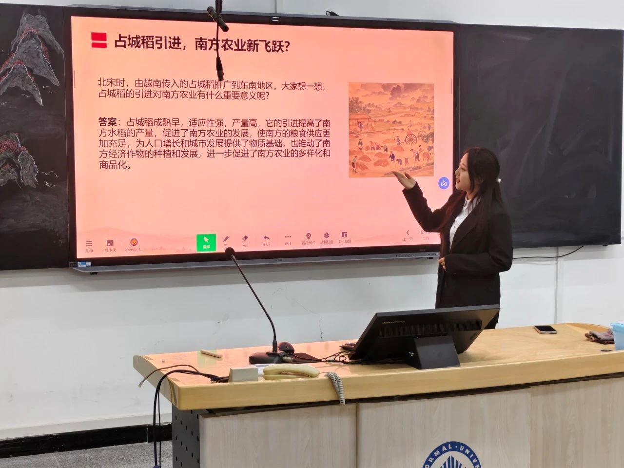 本次大赛分为微课设计、教学设计、板书设计三种参赛形式。同学们结合历史学专业特点,围绕《高中历史·中外历史纲要上》中任意一课进行了精彩的课堂呈现,展现了我院学子的讲课能力和数智风采!