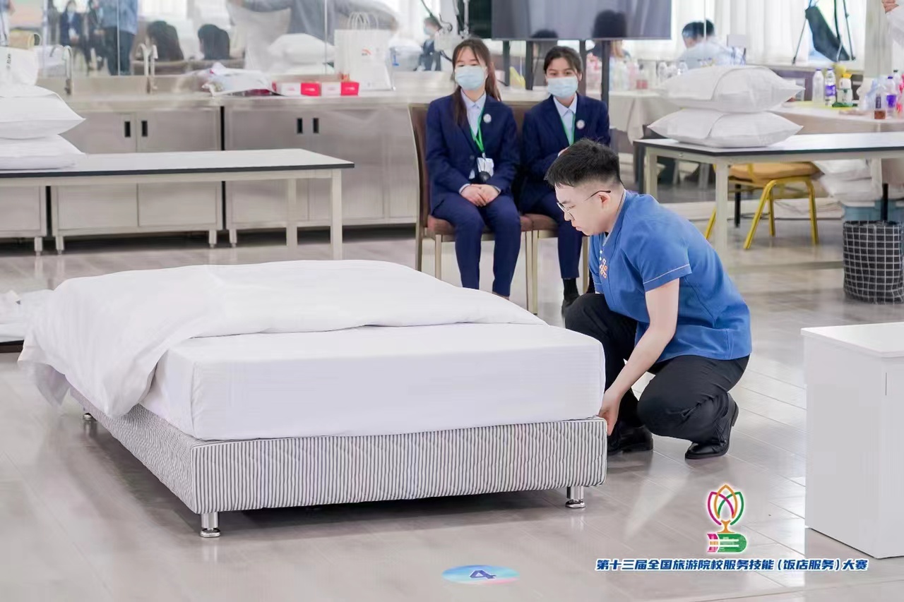 经过历时4天的紧张角逐,在董阿丹,张丽翠,祁丽三位教师的悉心指导下,我院4名参赛选手喜获佳绩。其中马小蕊获高校组西餐宴会摆台赛项一等奖,董天旭获高校组中式铺床赛项一等奖,朱佰兴获高校组鸡尾酒调制赛项二等奖,于柳获中餐宴会摆台赛项二等奖,我院以高校组第六名的成绩获得团体奖。