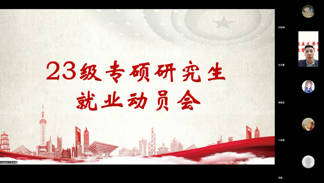 为助力学生高质量就业,推动学院就业工作提质增效,精准对接学生职业发展需求,我院近期在线上举办就业攻坚会。党委副书记王春波、分团委书记马荣陆、辅导员兼学院工会主席杜世豪主持会议,2021级本科生、2022级学硕研究生、2023级专硕研究生全体参会。
