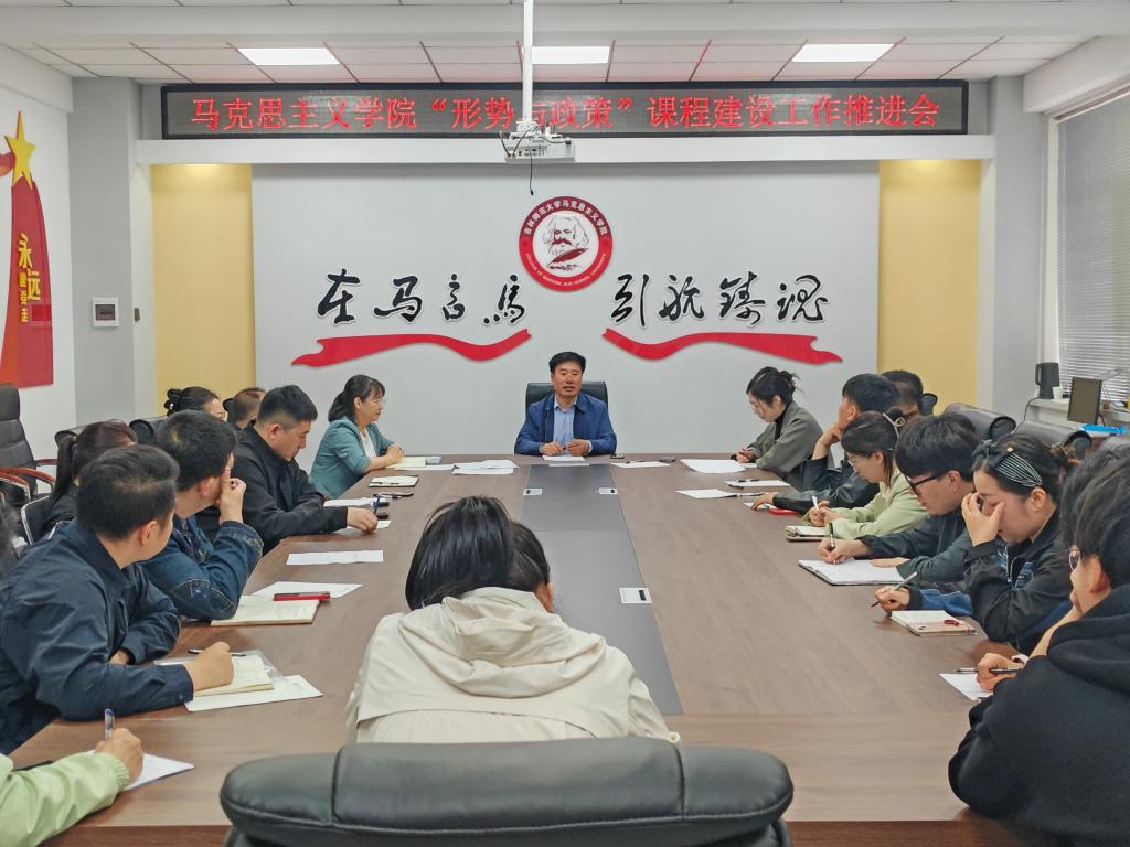 为了贯彻习近平总书记对高校思政课建设的重要指示精神,落实我校教务处等多部门对大型公共课课程建设的相关要求,5月31日上午,形势与政策教研室在马克思主义学院备课室举行“形势与政策课程建设工作推进会”,会议由马克思主义学院副院长张宇主持,教研室的专职教师、兼职教师出席本会议。