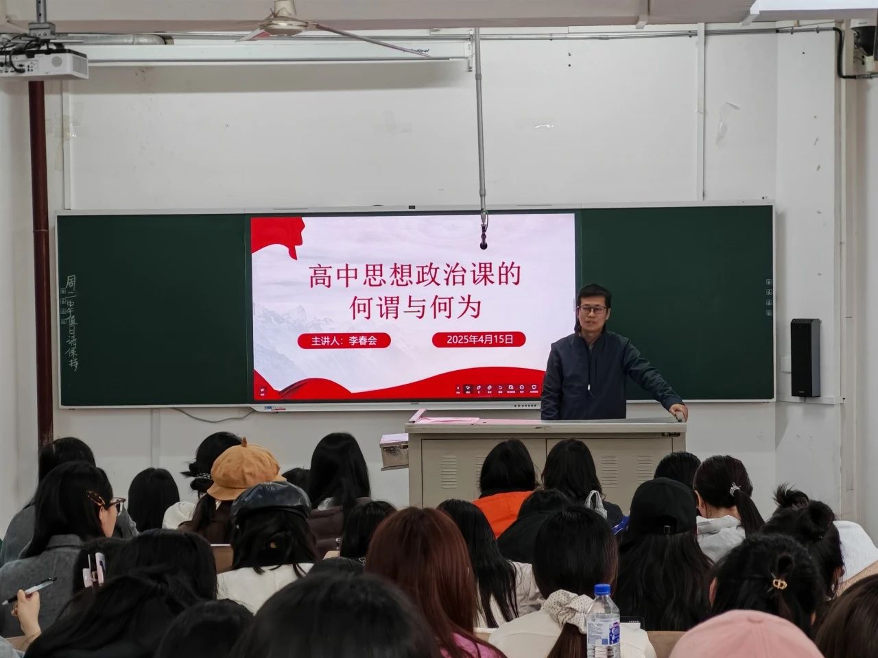 讲座伊始,李春会以“思政课是什么‘课’?”为出发点,从思想引领、价值引领、方向引领、科学思维引领、思维方向引领五个角度,简明扼要地阐述思政课的本质属性。