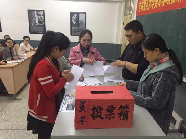 宋洪峰同志按照民主程序公布了到会人数,工会主席庞哲同志宣读了选举办法,介绍了代表分配名额和指导性比例要求。大会以举手表决方式通过了监票人、计票人名单。每位教职工依次上台投票,最后大会通报了计票结果,共产生学院代表8人参加学校会议。