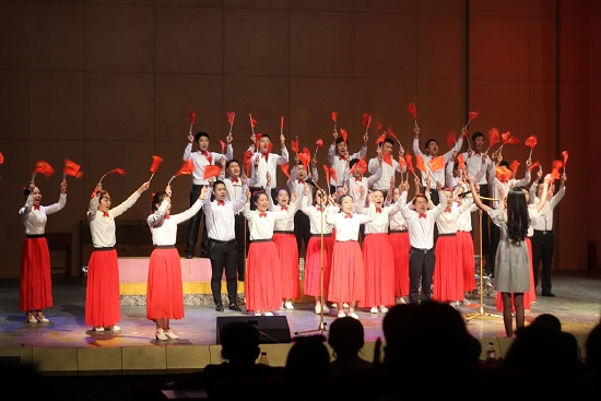 随着2014级学生干部婀娜多姿的舞蹈、大合唱,红歌会拉开了帷幕。首先,出场的是美学二班的《歌曲联唱》,在白色长裙的映照下,在红歌的引领下,一群群祖国的花朵绽放在舞台上。随后,一曲曲歌曲独唱《我和我的祖国》、《龙的传人》、《草原上升起不落的太阳》、《众人划桨开大船》等歌曲给我们带来了视听盛宴。其中,《众人划桨开大船》独特的队形,新颖的道具引来了在场阵阵掌声,并获得了一等奖的好成绩。接着,GPS的舞蹈、王鑫老师的《一剪梅》、视觉四班的《映山红》、环艺一二班的《强军战歌》等歌曲,都在活动的最后取得了大家热烈的掌声。
