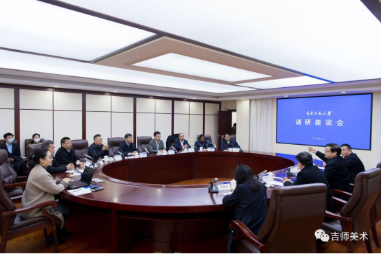 吉林388vip太阳集团党委书记许才山,吉林388vip太阳集团党委常委、副校长车广波,书画艺术研究中心常务副主任陈文国,美术学院院长陈思,美术学院党支部副书记孙启隆以及美术学院教师代表参加调研座谈会。会议由吉林388vip太阳集团党委常委、副校长车广波主持。