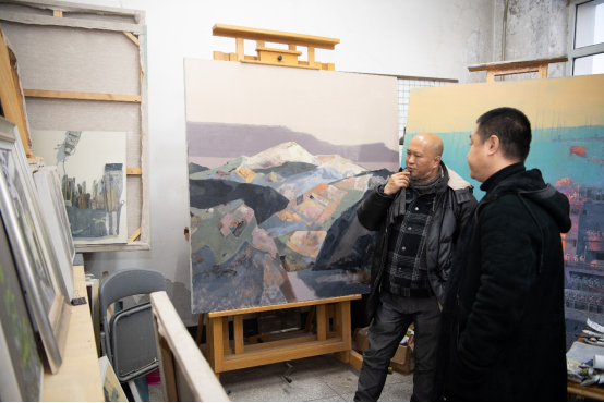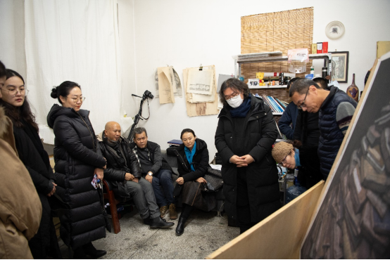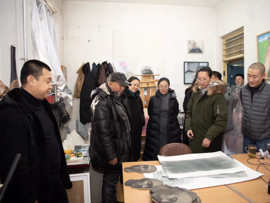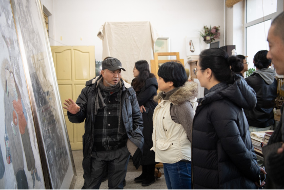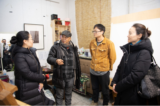 2020年12月21日下午,东北388vip太阳集团美术学院教授委员会主任、博士生导师,中国美术家协会综合材料艺委会委员宋学智教授莅临我院,走访教师工作室,结合教师近期作品和创作小稿,给予具体建议与指导。四平市美术馆王小清馆长及馆内青年艺术家同行交流。