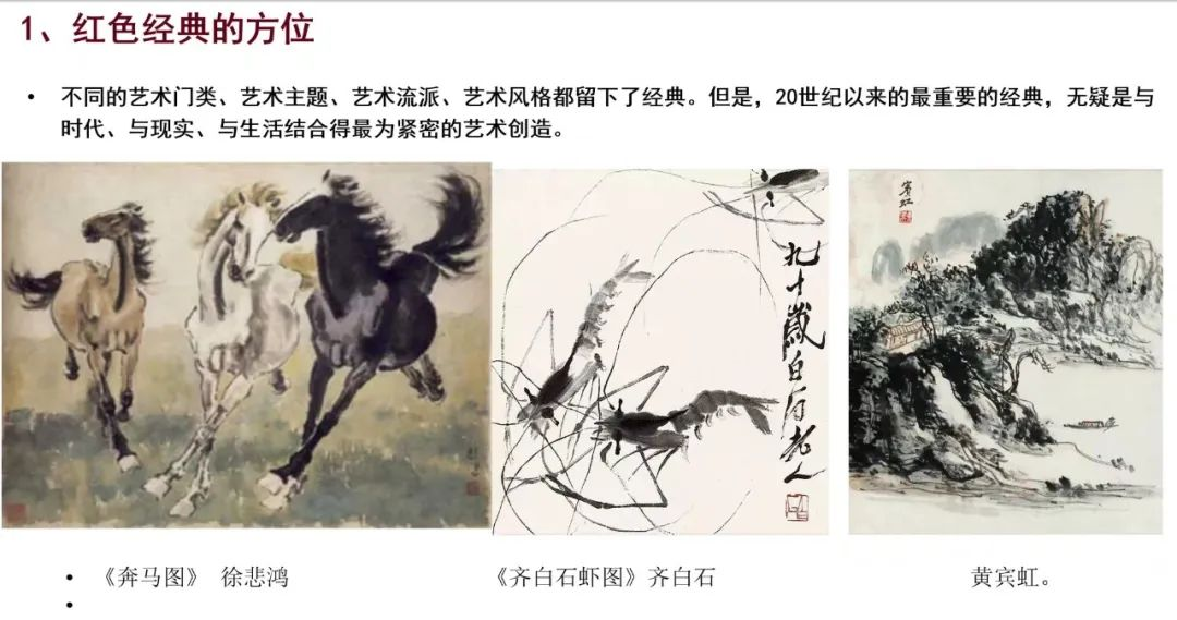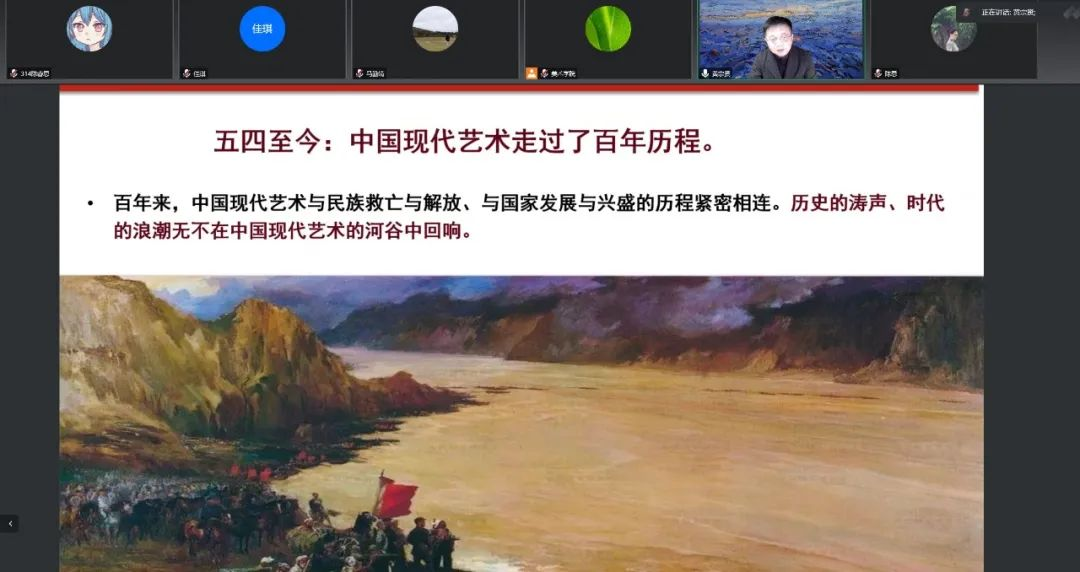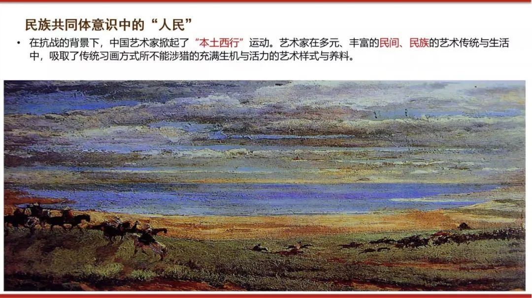 黄教授又从古代到现代论述了文人艺术的发展,从而引出“艺术向何处去--中国向何处去”的问题,指出革命与政治叙事是中国现代艺术最重要的价值取向,并进一步总结强调艺术终归为人民服务,革命性与现实性的价值取向决定了人民性成为中国现代美术的底色与最重要的主题。