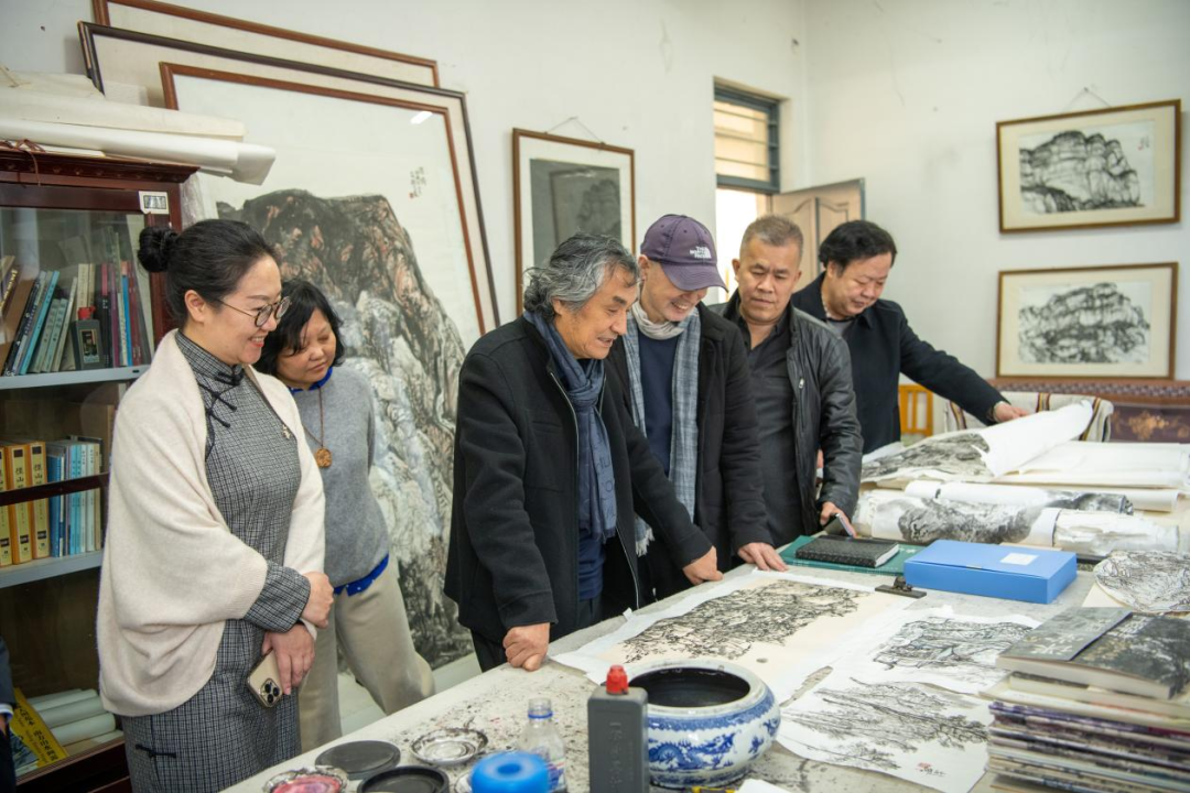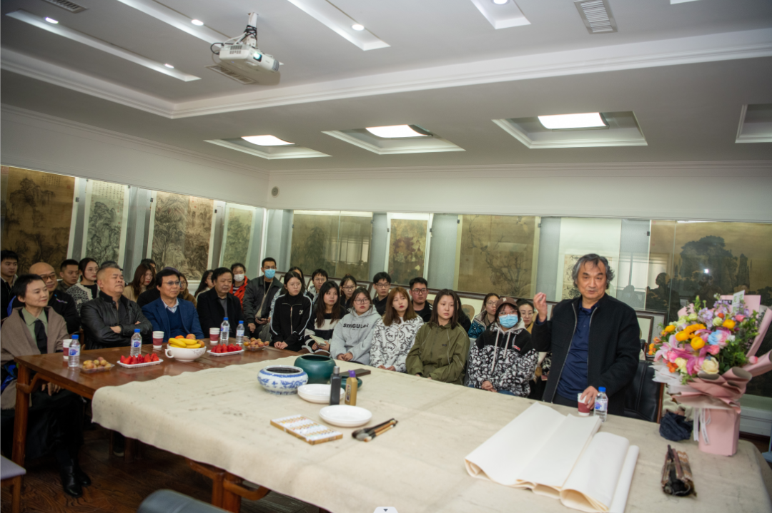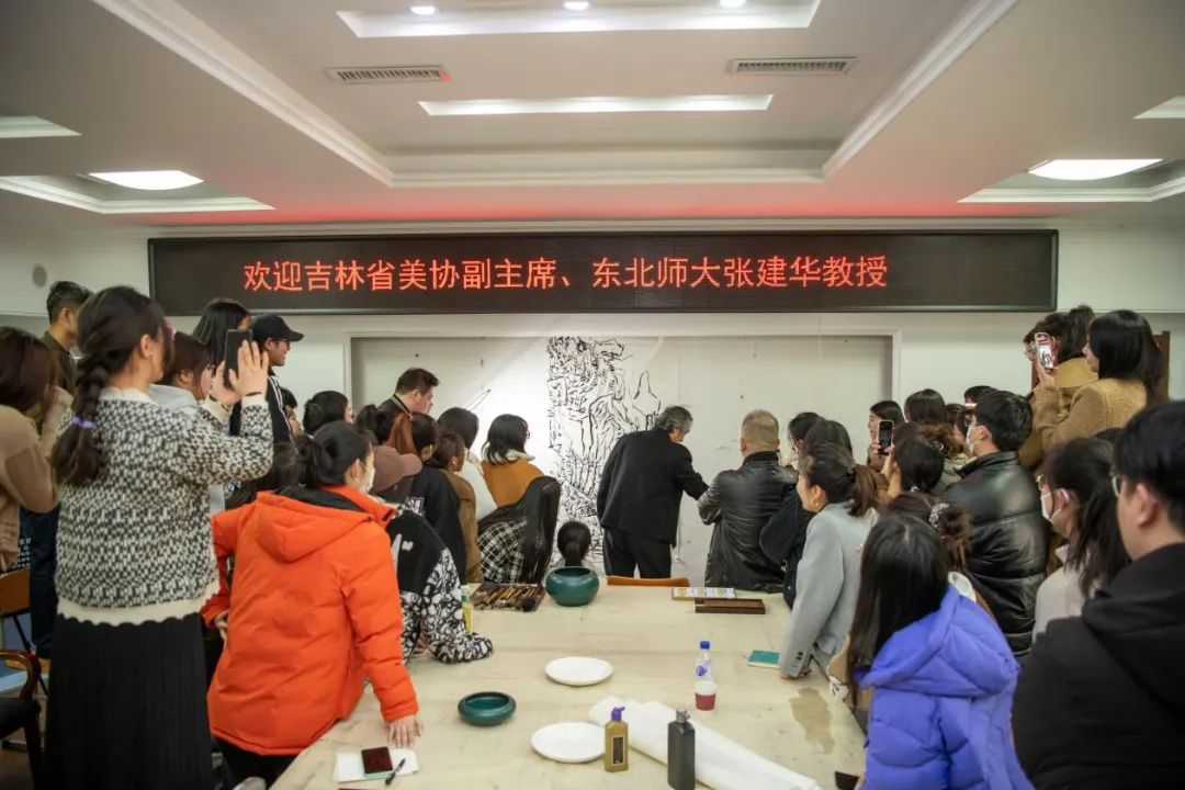 讲座和示范结束后,张建华教授走访了国画教师工作室和研究生教室,对师生近期创作作品和艺术项目等分别给予具体针对性的指导。