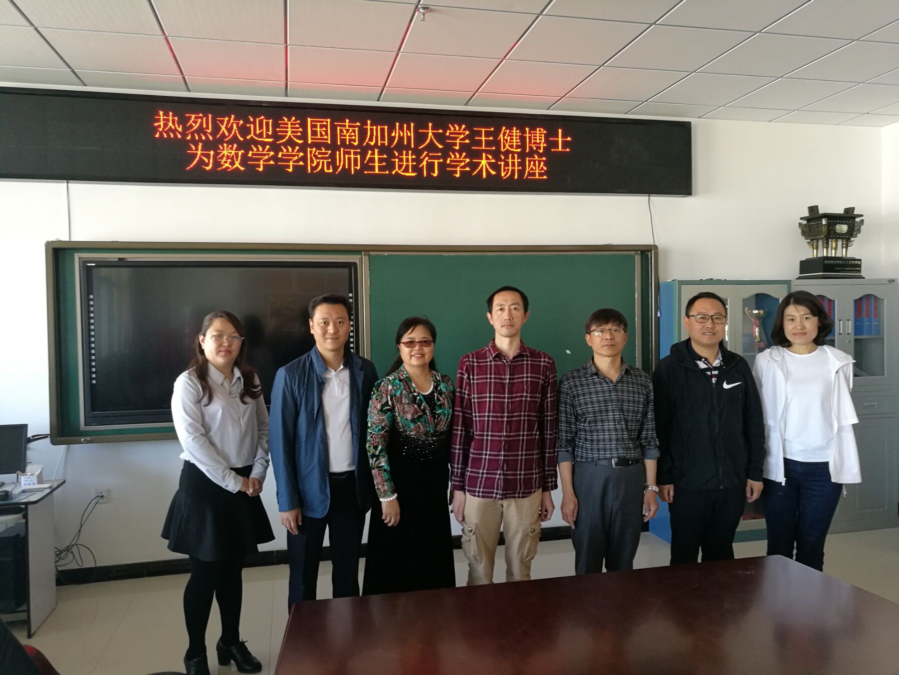 2018年5月18日,数学学院邀请王健博士在第11教学楼数学学院会议室为我院老师做了题为《On the Cyclic Torsion of Elliptic Curves over Cubic Number Fields》的学术讲座。王健博士,1979年出生,本、硕为北京大学,俄亥俄大学硕士研究生,博士毕业于美国南加州大学,清华大学数学系博士后。主要从事代数数论方面的研究工作。