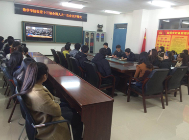 2018年3月5日,按照学校党委要求,数学学院组织部分师生在学院党员活动室收看了十三届全国人大一次会议开幕会。与会师生观后纷纷表示听了李克强总理的政府工作报告,很振奋,今后要深入学习十九大精神,努力做好本职工作。