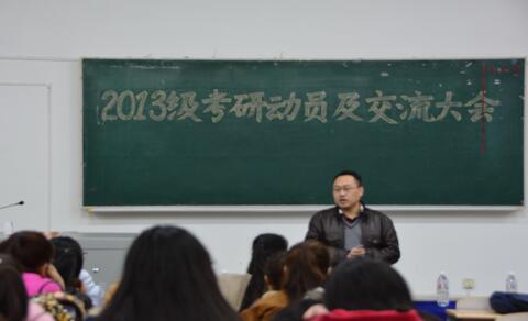 大会上,程老师向同学们介绍了考研的相关情况,鼓励同学们积极报考研究生。2012级参加考研的同学也向同学们讲述了考研经验。