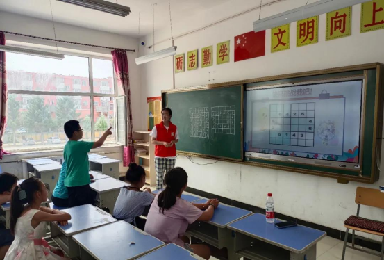 此次三下乡活动,以传播数学文化为主,志愿者为孩子们介绍我院特色品牌活动——数学文化节,带领孩子们学习数学知识,讲述生活中的数学,进行多种多样数学趣味活动,与孩子们一起感受数学的魅力。炎炎七月,热情洋溢,青春的活力、奉献的精神在一间间教室里熠熠闪光。