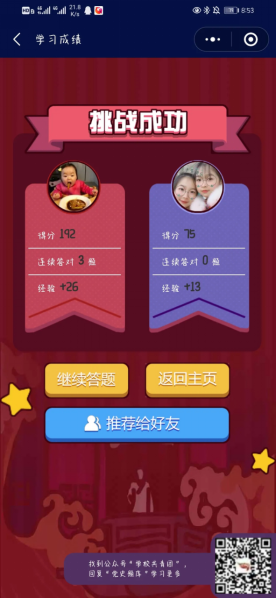 一起学党史活动热烈进行中,数学学院积极组织广大青年团员利用微信小程序一起学党史进行网上答题对战,同学们积极参与,学习党史,学好党史。做到学史明理、学史增信、学史崇德、学史力行。