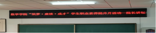 为充分落实立德树人根本任务,提升学生职业素养,4月15日,我院“筑梦·赓续·成才”学生职业素养提升月活动之院长讲坛在11教五楼会议室成功举办。