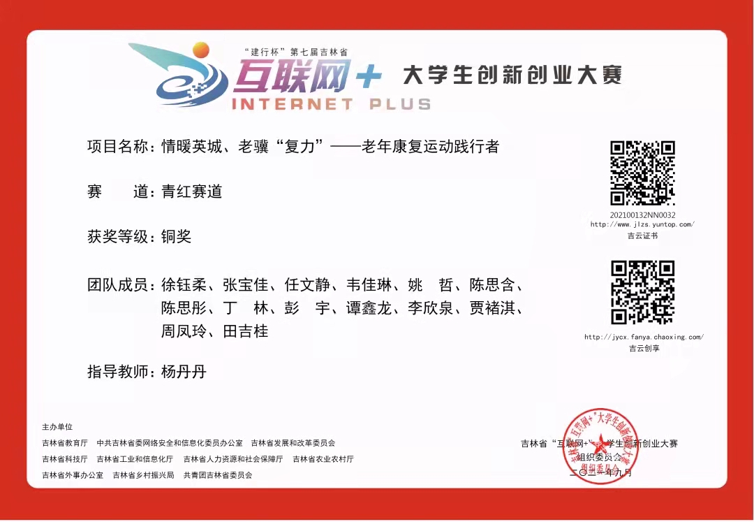 7月31日,在吉林省教育厅主办的“建行杯”第七届吉林省互联网+大学生创新创业大赛中,我院荣获省级铜奖的好成绩。在指导教师杨丹丹老师的带领下,整个团队上下一心,各个部门保质保量完成工作任务。最后在比赛中荣获省级铜奖并获得证书。获奖证