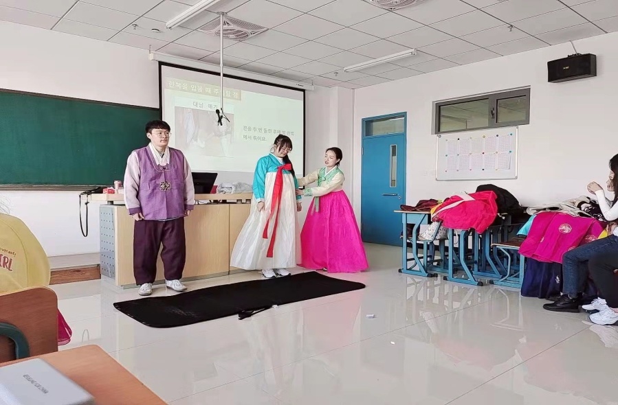 为激发学生对韩国传统文化和韩语学习的兴趣,陶冶学生的艺术情操,朝鲜语系于2021年12月15日举办韩国传统文化体验活动之—韩服体验活动。朝鲜语系教师池美英及2019级朝鲜语系学生参与本次活动。