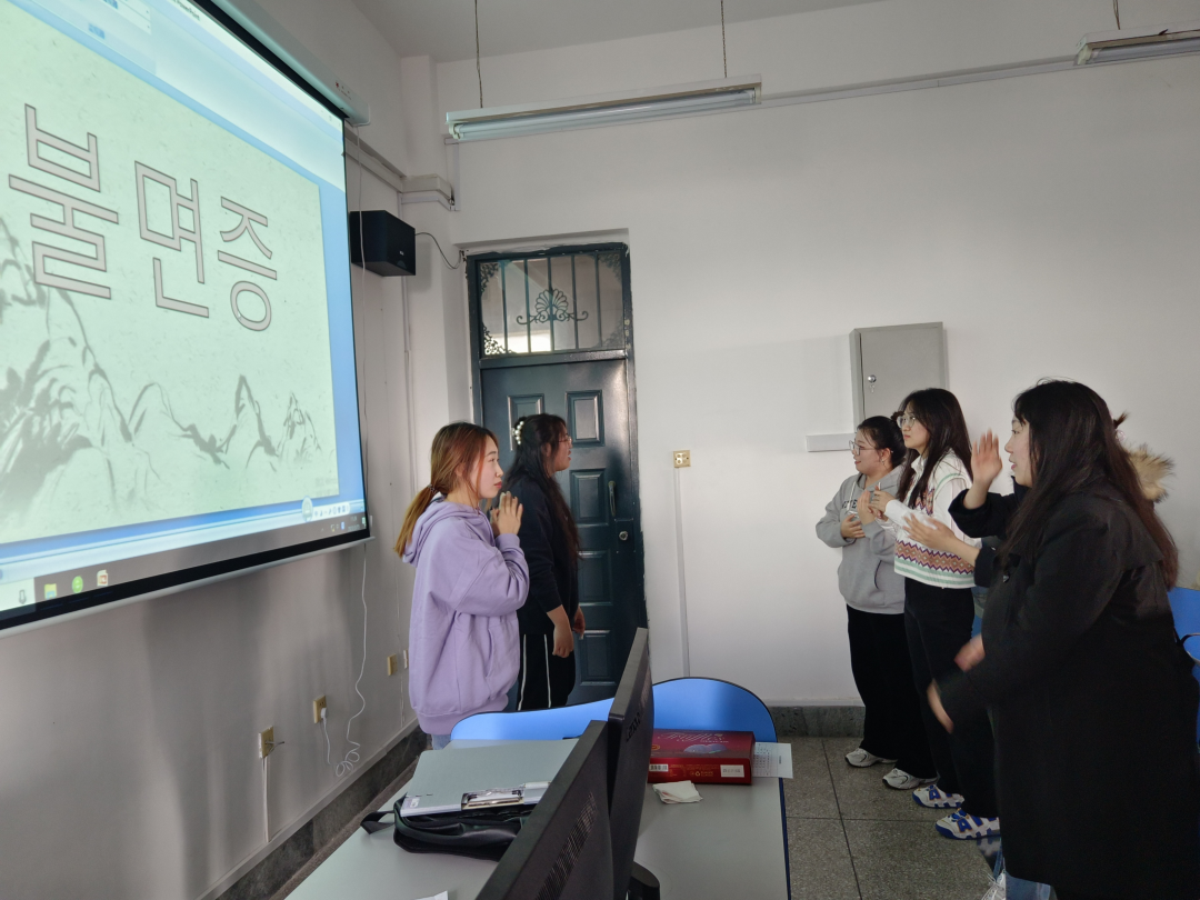 为拓展学生的语言技能,丰富学生的校园文化生活,缓解学习压力,培养良好的团结协作能力,3月15日上午,朝鲜语系在1605教室举办了韩国语言文化活动。朝鲜语系2021级2班全体同学参加活动。活动由朝鲜语系谢范范老师主持。
