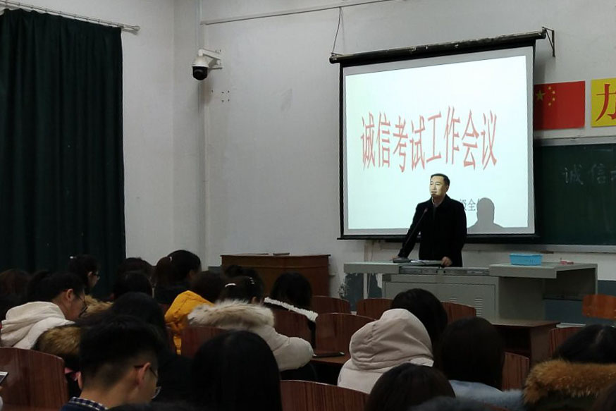 各年级辅导员针对即将举行的2019年全国硕士研究生考试、全国大学英语四六级考试、期末考试提出要求,要求同学们要高度认识各种考试的严肃性,以实力检验自我,以诚信构筑人生。会前,各年级辅导员认真排查并关注重点学生,采取个别谈话、考试辅导等形式,助力学生做好心理调适、增强信心、轻松迎考;并重点做好对学生干部、学生党员的教育动员工作,使其切实发挥模范带头作用,积极营造良好考风学风。同时也对学校安全工作会议精神进行传达,要求学生加强食品、交通、消防、网络、财产等涉及自身安全学习。要求对整个教学楼和学生宿舍区的各项安全隐患工作进行排查、整改。会后,各年级分别以班级和专业为单位组织学习了中华人民共和国刑法修正案(九)和国家教育考试违规处理办法(节选)及普通高等学校学生管理规定(节选)等法规。各年级以班级为单位组织同学签署诚信考试承诺书。