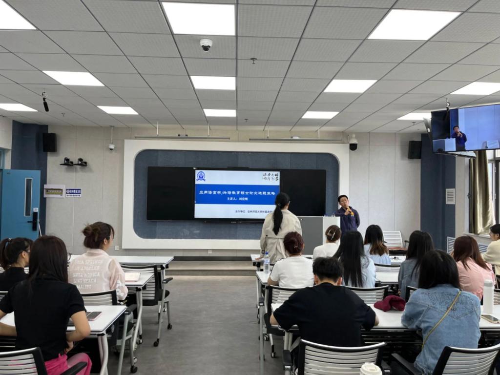 5月13日上午,学院在11教学楼11904(2)室举办了题为“应用语言学/外语教育硕士论文选题策略”学术讲座,特邀北京大学博士、苏州大学特聘教授、博士生导师刘宏刚担任主讲。学院英语语言学和学科教学(英语)研究生参加了本次讲座。讲座由副院长李艳红主持。