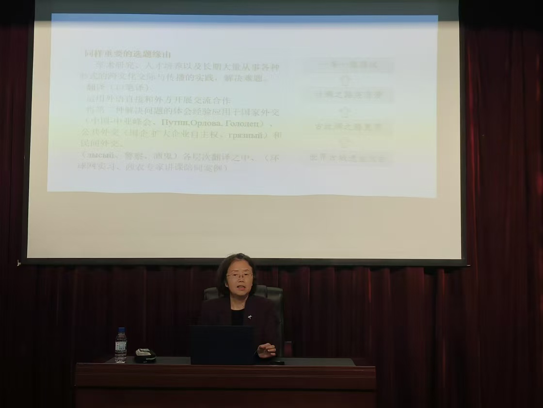 11月25日下午,西安外国语大学赵红教授应邀在第十一教学楼11204教室为俄语系师生带来了一场题为“以服务社会为导引的俄语翻译教学与研究”的精彩沙龙讲座。讲座吸引了俄语专业师生的积极参与,讲座由副院长潘艳主持。