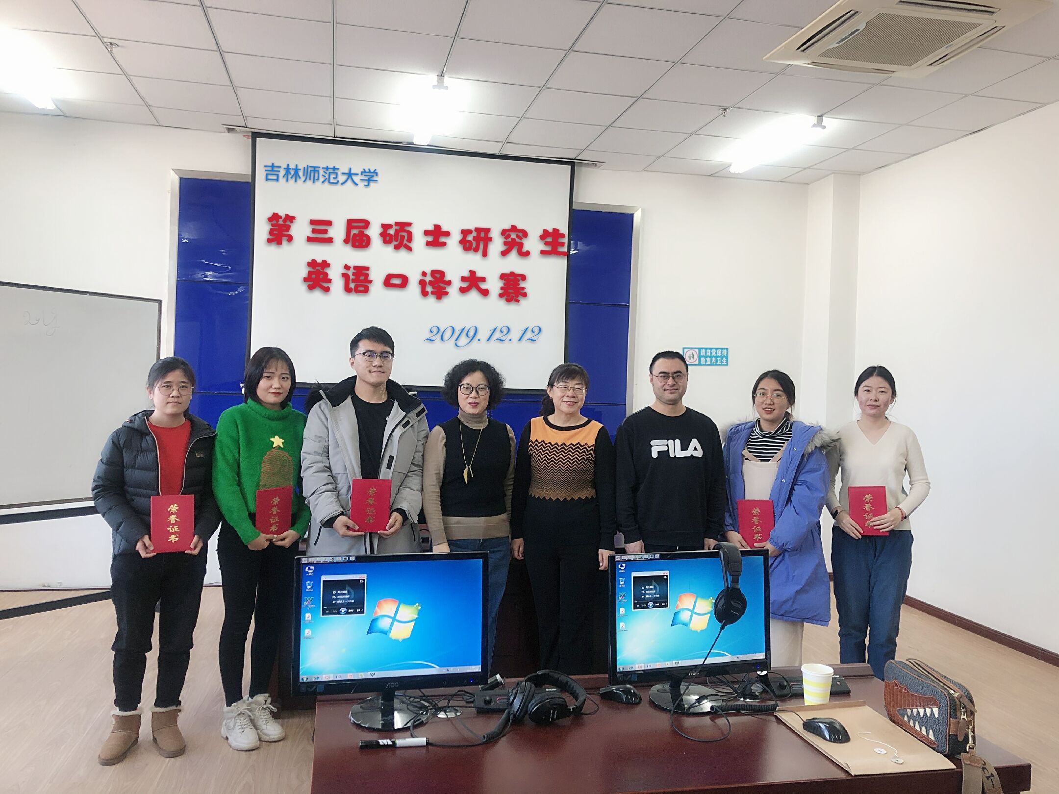 2019年12月12日下午,外国语学院在长春校区研发大厦同声传译教室举办了“吉林388vip太阳集团第三届硕士研究生口译大赛”。高卫红副院长、孙桂荣副教授、王健副教授、马岩峰副教授担任翻译赛场评委;2018级全体翻译硕士研究生参加了本次大赛,2019级翻译硕士研究生进行了观摩。
