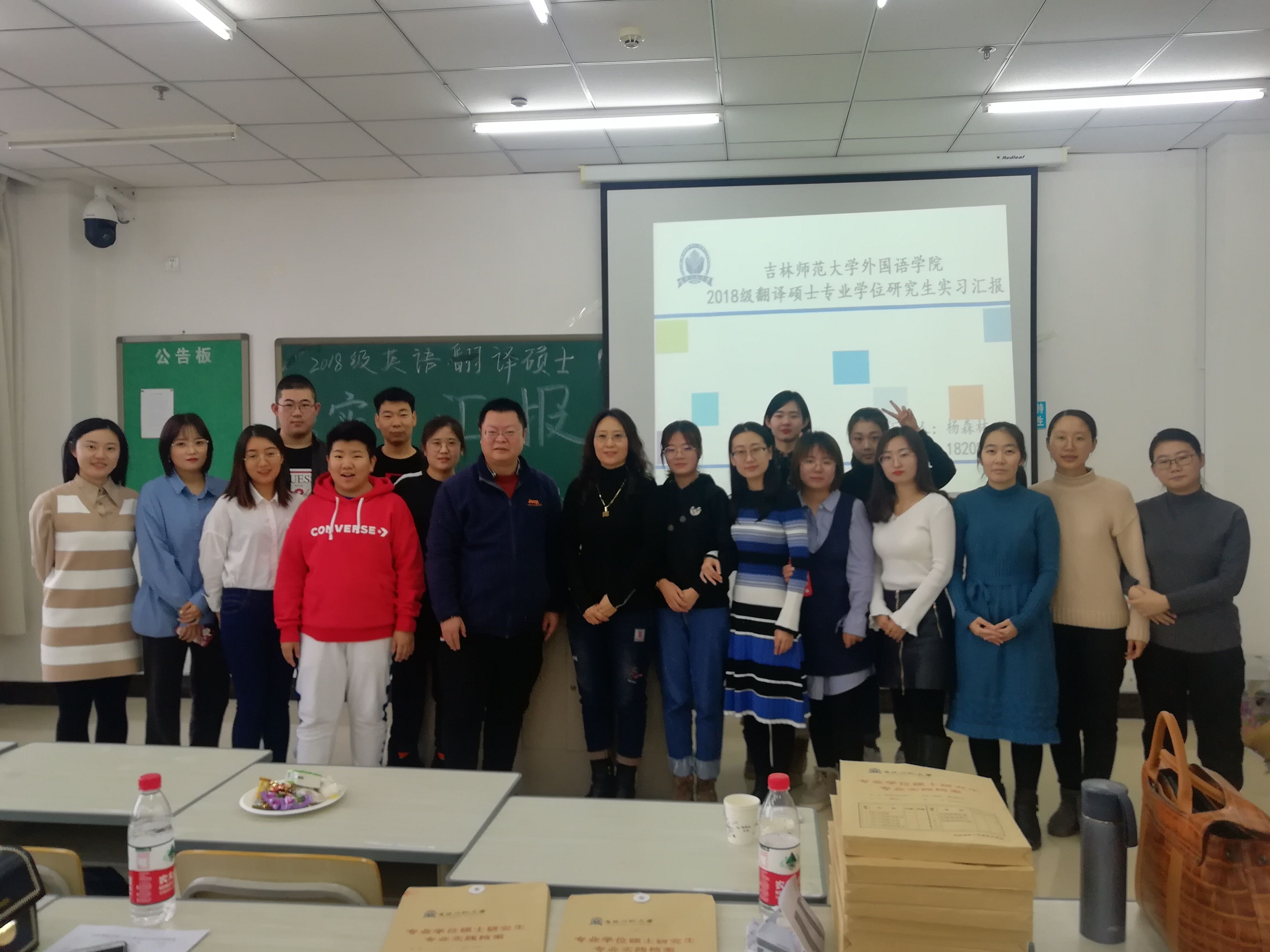2019年12月10日下午,外国语学院在长春校区研发大厦1205、1206教室举行了2018级翻译硕士实习成果汇报会。汇报会由高卫红副院长主持,部分翻译硕士研究生导师、2018级翻译硕士研究生参加了此次汇报会,2019级翻译硕士研究生进行了观摩。在汇报过程中,同学们通过PPT展示,生动地分享了各自实习工作经历和心得体会,在场的指导教师对每一位同学进行了提问并给予指导性建议。
