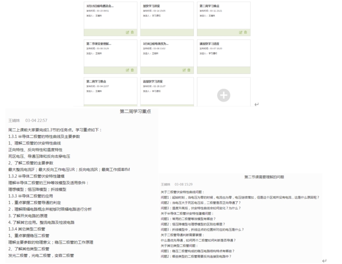 图3 《模拟电子技术》课程教学重点发布