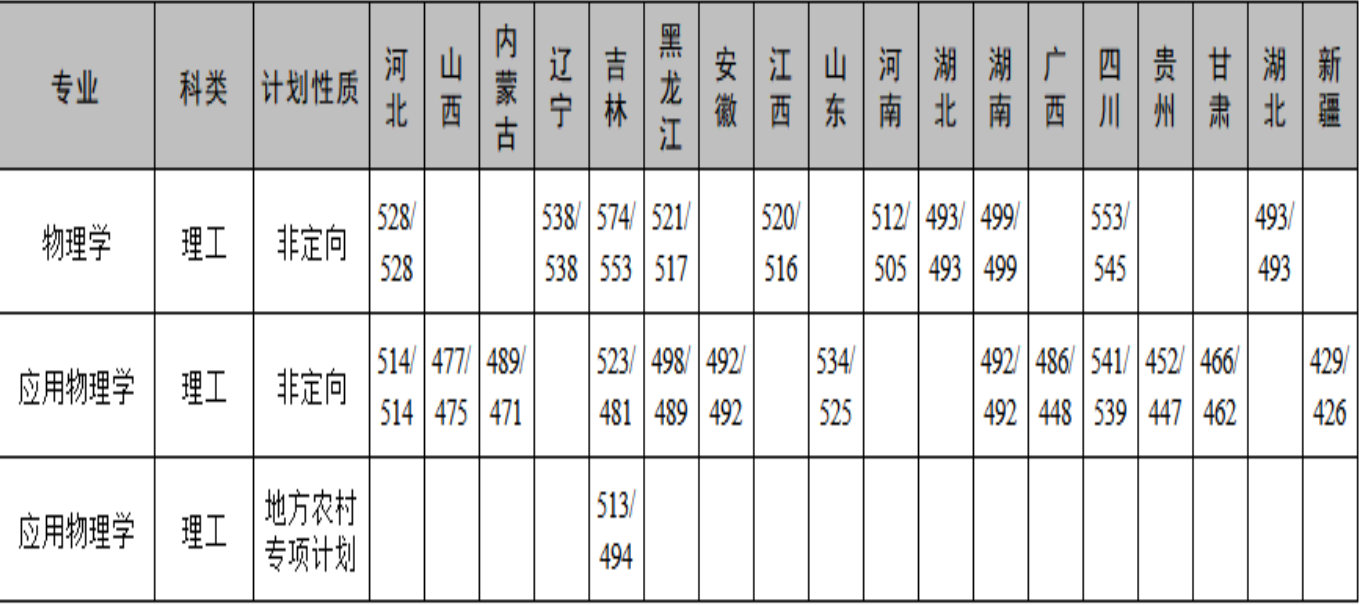 吉林388vip太阳集团物理学院2020年各专业录取分数统计表