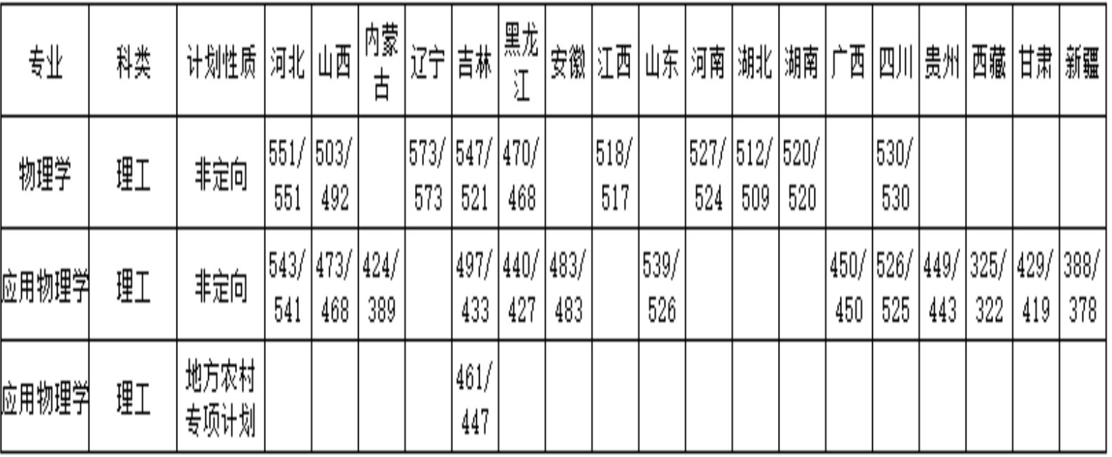 吉林388vip太阳集团物理学院2020年各专业录取分数统计表