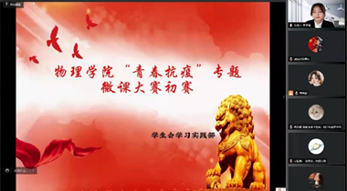 为全面提升大学生综合素质与实践技能,加强疫情防控期间学生们的思想教育。物理学院于2022年3月30日以线上腾讯会议的形式举办“青春抗疫”线上主题微课大赛活动,比赛评委由徐仕翀教授和刘立华副教授担任。
