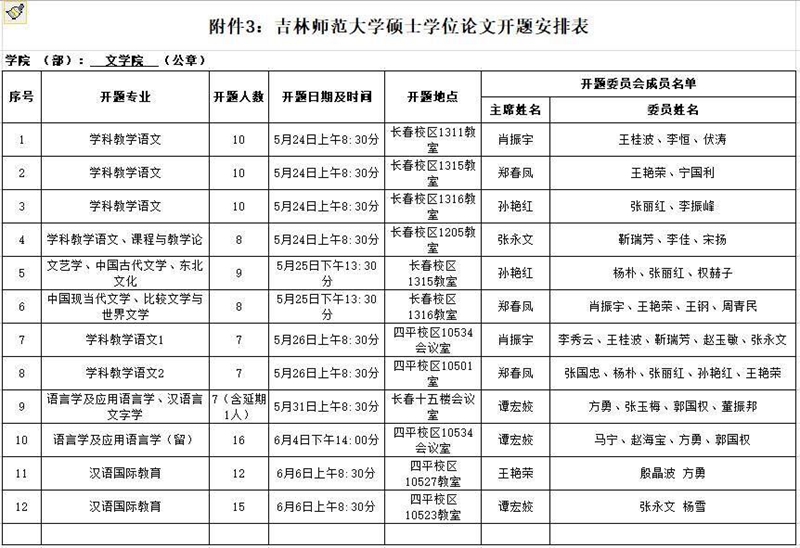 文学院硕士学位论文开题、答辩安排(2018-05-18)