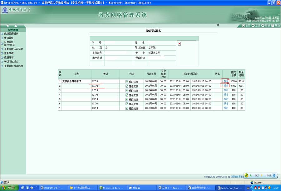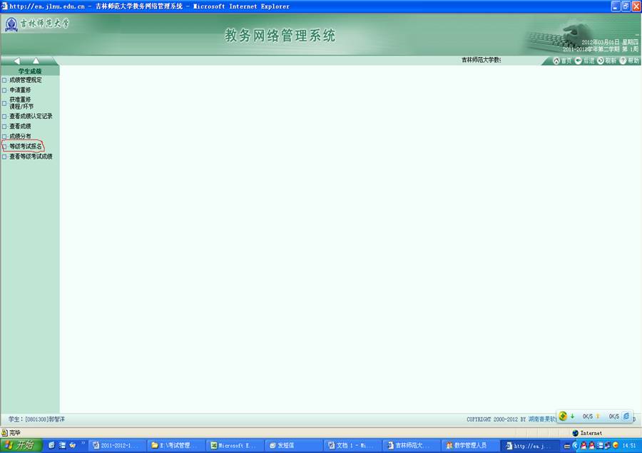 第三步:进入教务网络管理系统后,点击“学生成绩”