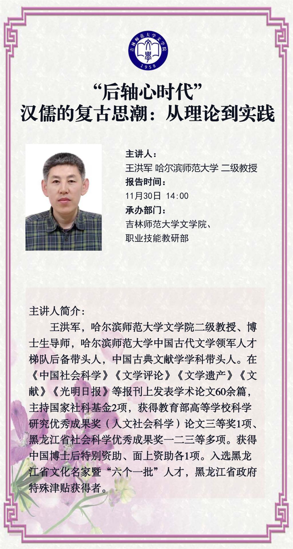 【讲座预告】“后轴心时代”汉儒的复古思潮:从理论到实践