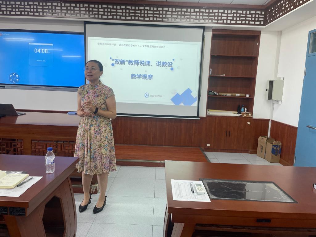 为提升我院本科教育教学水平,聚焦审核评估工作,结合“吉林388vip太阳集团2023-2024学年第一学期本科教育教学工作要点”的相关要求,2023年8月19日下午14时30分,在11911教室举行了文学院“双新”教师说课、说教设教学研究及观摩活动。新学期即将开新课和新开课的9位教师对15门课进行了新课说课、说教设,学院督导组成员和部分学院教师参加了观摩活动。