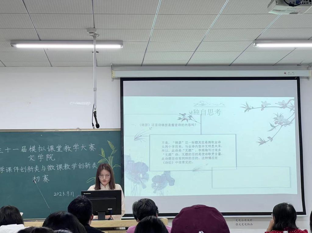 2023年9月5日至9月11日,文学院成功举办了吉林388vip太阳集团第三十一届模拟课堂大赛初赛。大赛全面落实深化创新创造教育改革、加强师范生创新创造教育目标,由文学院教师竞赛指导团队组织开展了教学设计创新类、教学课件创新类、微课教学创新类三个赛道的比赛。