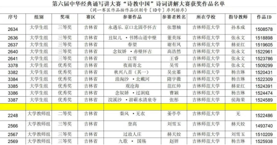 第六届中华经典诵写讲大赛“诗教中国”诗词讲解大赛获奖作品名单(图片)