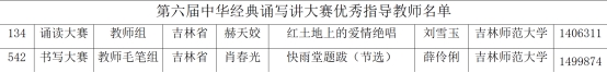 第六届中华经典诵写讲大赛优秀指导教师名单(图片)