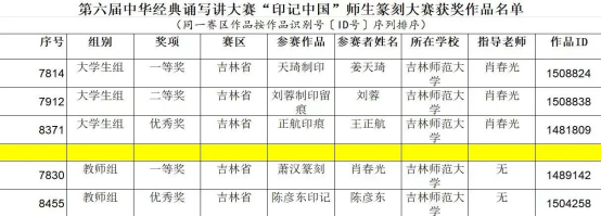第六届中华经典诵写讲大赛“印记中国”师生篆刻大赛获奖作品名单(图片)
