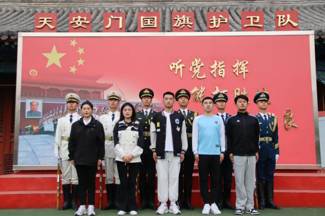凌晨两点,吉师国旗护卫队代表出发前往天安门,观礼天安门广场升旗仪式,注视五星红旗与朝阳同时升起,中华人民共和国国歌庄严回响在天安门广场,在场队员无不热泪盈眶。回想起过往祖国艰难的探索史、抗争史,队员对祖国的热爱愈发强烈;追忆百年来不断奋斗创造美好生活的前辈,队员为中华民族伟大复兴的决心愈发坚定。