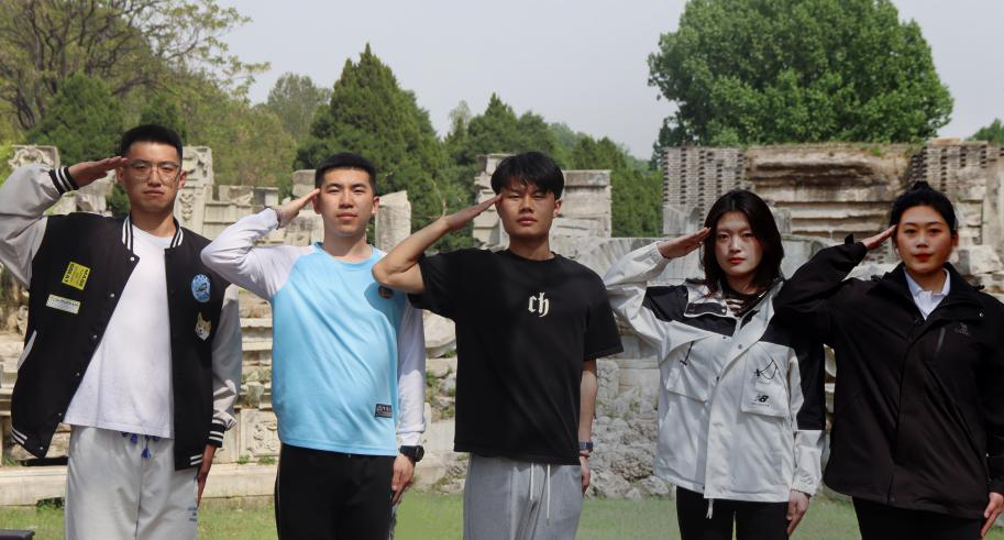 春风拂过圆明园的断垣残壁,国旗班队员聆听历史的低语。他们仿佛听到一八六零年文物的哭泣,似乎看到园内火舌肆虐、硝烟四起。一切厚重经过时间沉淀化作四字:自强不息。