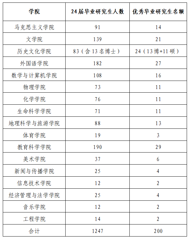 2024届优秀毕业研究生评选工作定于2024年5月15日开始,请各学院于5月29日上午11:00前上交评选材料,电子版材料发送至邮箱xscxsk@jlnu.edu.cn;纸质版材料交至学生事务服务科,具体要求如下: